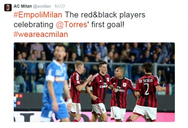 이날 엠폴리에 전반 21분 만에 2골을 내주며 끌려가던 AC밀란은 전반 43분 토레스가 완벽한 헤딩골을 선보이며 팀에 귀중한 추격골을 선보였고, 후반 들어 일본의 혼다 케이스케가 동점골을 넣는 맹활약 속에 엠폴리와 무승부를 거뒀다.