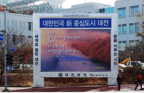 한편 내년 봄에 게시할 ‘대전사랑 글마당’ 문안은 이달부터 내년 2월 10일까지 시 홈페이지(http://www.daejeon.go.kr)를 통해 공모한다.