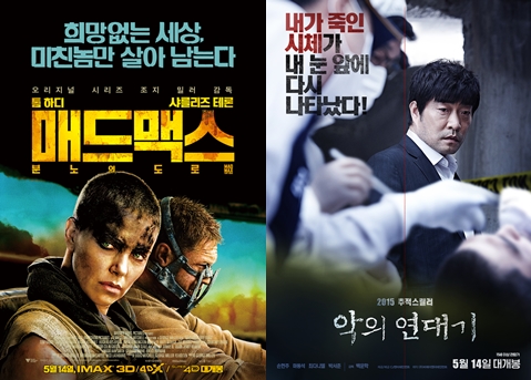 두 작품은 지난 14일 동시 개봉한 이후 '어벤져스: 에이지 오브 울트론'(이하 '어벤져스2')를 3위로 끌어내리며 흥행을 예고했다. 개봉 이후 비슷한 관객 추이를 보였으나 '악의 연대기'가 한 발 앞서며 줄곧 박스오피스 1위를 고수했다. 그러나 지난 18일 이후 '매드맥스'가 관객수에서 앞서며 1위를 유지하고 있다.