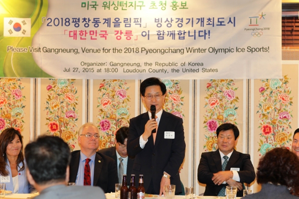 방문단은 미국 워싱턴 지역 한인대표 초청행사에 참석 2018 평창동계올림픽 빙상경기 개최도시 강릉을 홍보하고, 워싱턴지구 한인대표들과 친교의 자리를 같이 했다.
