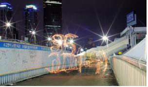최우수상인 김태효씨(34·노량진2동)의 작품은 불꽃놀이 불빛을 이용해 ‘35 고마워’라는 글자를 표현했다. DSLR 카메라로 셔터속도를 느리게 해서 장노출로 찍었다. 새벽시간 육교 위에서 촬영했으며, 타이머 기능을 활용해 본인과 여자친구의 모습을 함께 담았다.