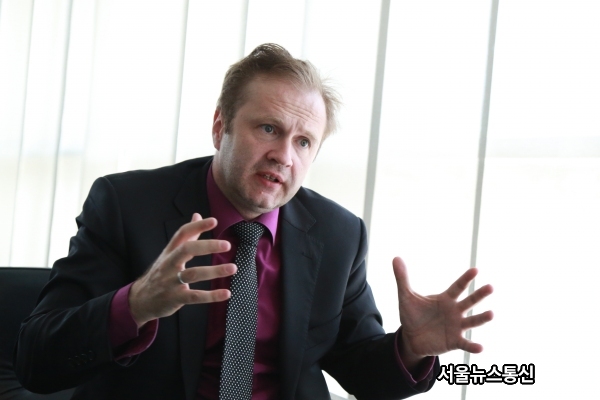 Amer Bukvic, director of Bosnia Bank International (BBI) and Sarajevo Business Forum (SBF), talks during an interview with Xinhua, in Sarajevo, Bosnia-Herzegovina, on April 27, 2016. During the interview, Bukvic noted it was mutually beneficial to combine SBF with the Trade and Economic Forum of the"16+1", or the cooperation between China and countries in Central and Eastern Europe (CEE). The 7th SBF, to be held in Sarajevo from May 4 to May 5, will focus on "16+1" cooperation under the topic "One region, One Economy Perspectives China+16". The annual event, hosted by BBI, is one of the largest business events in the region. snapress@snakorea.com
