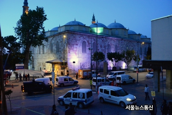 Police secure the bombing area after the suicide blast in Bursa, Turkey, April 27, 2016. A suicide blast rocked Turkey's northwestern city of Bursa on Wednesday, killing the female attacker and wounding 17 others, Turkish media reported. snapress@snakorea.com