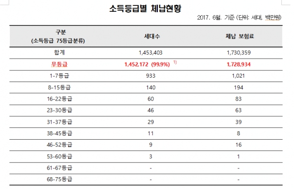 【서울=서울뉴스통신】 강재규 조필행 기자 = 건강보험료(지역) 6개월 이상 장기 체납자가 210만 세대에 이르고 있으며, 이 중에서 69.2%에 이르는 145만 세대가 월 보험료 5만원 이하의 생계형 체납자인 것으로 나타났다.