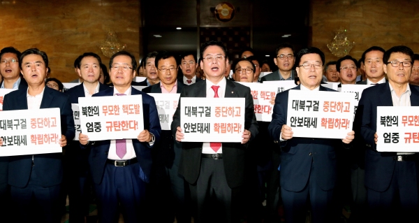 한국당은 이에 따라 박성진 중소벤처기업부 장관 후보자와 김명수 대법원장 후보자의 인사청문회 , 그리고 김이수 헌법재판소장 임명동의안 등을 놓고 국회내에서 표결싸움을 벌여가는 동시에 장외 대정부 투쟁도 병행할 방침인 것으로 알려지고 있다.