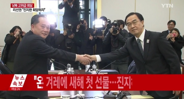 그러면서 "예로부터 민심과 대세가 합쳐지면 천심이라고 했다. 이 천심을 받들어 북남 고위급 회담이 마련됐다"며 "우리 북남 당국이 진지한 입장, 성실한 자세로 회담을 잘해서 이번 고위급 회담을 주시하면서 큰 기대를 걸고 있는 온 겨레에게 새해 첫 선물로 값비싼 결과물을 드리는 게 어떠한가 하는 생각을 갖고 이 자리에 나왔다"고 말했다.