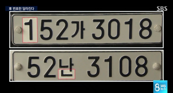 새 승용차 번호판으로는 두 가지가 검토되고 있다. 앞 숫자 한자리를 추가하거나, 숫자는 그대로 두고 중간에 들어가는 한글에 받침을 넣는 방안이다.
