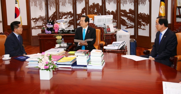 한경호 권한대행은 정 국회의장을 방문한 자리에서 항공, 해양플랜트, 항노화 등 신성장 동력산업을 육성하고 남해안과 지리산 등 접근성 향상을 통해 관광객 1천만 시대를 열어 국가균형발전의 초석이 될 남부내륙철도 조기 건설이 필요하다면서, 10조 6천억 원의 생산유발효과와 8만개 이상의 일자리가 새로 생기는 사업으로 국회에서 적극적으로 협조해 줄것을 요청했다.