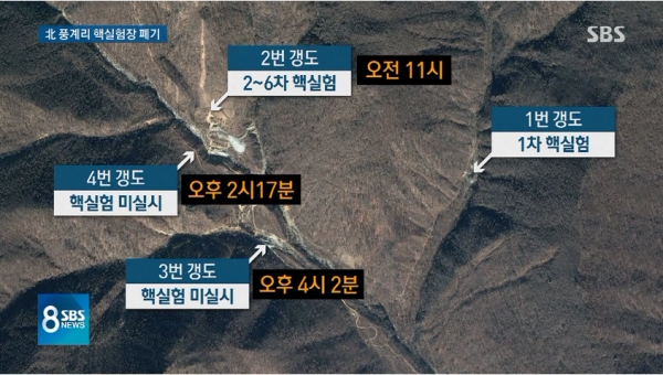 풍계리 핵실험장은 지난 2006년 첫 핵실험을 시작으로 그동안 6차례 핵실험이 이뤄진 곳으로 오늘 폭파로 10여 년만에 문을 닫게 됐다.