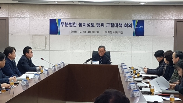 회의에서는 농지성토행위에 대한 지도·단속에 대한 지침을 마련해 12월부터 내년 3월말 까지 관계부서 특별단속을 통해 불법행위는 관련법에 의거 원상복구 명령 및 토지주·행위자를 모두 사법기관 고발 조치하겠다고 밝혔다.