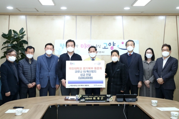이번에 전달된 성금 300만원은 국민대학교 경기북부 동문회 회원들이 마스크 등 방역물품 구입에 어려움을 겪는 저소득 취약계층의 코로나 19 감염 예방을 위해 마련한 것으로 경기북부 사랑의 열매를 통하여 저소득 대상자에게 성금으로 지원 될 예정이다.