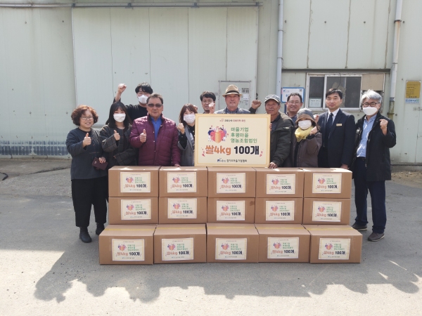 이날 후원물품 전달식에는 경기도 마을기업협회와 김포시 관내 마을기업인 ▲달뫼마을사람들 영농조합법인 ▲엘리트농부(주) ▲㈜조강랜드 ▲과수원길 협동조합 ▲금빛 영농조합법인이 참여했으며, 공동체로서 코로나19 극복과 상생을 위해 함께 지속적인 노력을 하자고 뜻을 모았다.