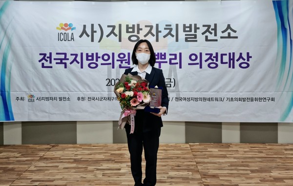 사)지방자치발전소(ICOLA)에서는 지방의회 30주년을 기념하여 전국 광역 및 지방의원들의 지난 3년 동안 펼친 우수한 의정활동을 공모하여 10월 8일 서울혁신파크 미래청에서 ‘2021 풀뿌리 의정대상’ 대상1명과 최우수14명에 대한 시상식을 하였다. 시상식에서 목포시의회 김수미 의원이 대상의 영예를 안았다.