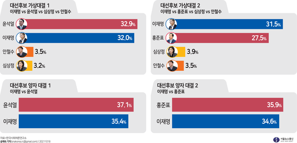 윤석열ㆍ홍준표 오차범위내 우세