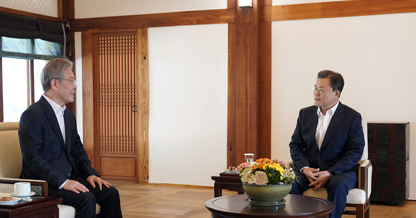 【서울 =서울뉴스통신】 신현성 기자 =문재인 대통령과 더불어민주당 이재명 20대 대선후보가 26일 오전 청와대에서 약 50분간 만남을 가졌다. 신현성 기자 snakorea.rc@gmail.com 다른기사 보기 저작권자 © 서울뉴스통신 무단전재 및 재배포 금지 댓글삭제 삭제한 댓글은 다시 복구할 수 없습니다. 그래도 삭제하시겠습니까? 비밀번호 닫기 기사 댓글 0 댓글 접기 댓글입력 권한이 없습니다. 댓글 내용입력 비회원 로그인 이름 비밀번호 댓글 내용입력 댓글쓰기 계정을 선택하시면 로그인·계정인증을 통해 댓글을 남기실 수 있습니다. 회원 로그인 이름 비밀번호 자동등록방지 로그인 옵션 창닫기 당신만 안 본 기사 대전시, 형형색색 단풍으로 물든 대전전역 ‘인생샷 명소’ 자리잡다 삼일로창고극장, ‘연극하는 시니어’ 공연 개최…풍자극·미스터리극 두 편 [사진] 즐거운 모습의 수영 대회 참가자들 홍정민, 위메이드 주최 ‘위믹스 챔피언십 2025’ 우승컵 들어올려 [문화] 전통과 현대의 만남...일상으로 스며든 中 '新중국식' 패션 [이슈] 中 리창 총리, 라마포사 남아공 대통령과 회견 "양국 공동 발전과 단결·협력 촉진할 것" [내일 날씨] 전국 흐리고 초겨울 날씨…서울 아침 2도 주요 기사 초등학교 첫 관문…2026학년도 예비소집 다음 달 시작 중개시장 한파…개업 공인중개사 5년여 만에 11만명 붕괴 겨울철 중대재해 경보…노동장관 “생명안전 감수성 높여야” 긴급 점검회의 개최 조국 "내란 1년…국민의힘, 내란 세력과의 단절 분명히 해야" 기후부, 내년 상반기 ‘녹색전환 전략’ 확정…발전업계와 첫 간담회 시작 서울고속버스터미널 입체복합개발 본격화…서울시, 사전협상 착수