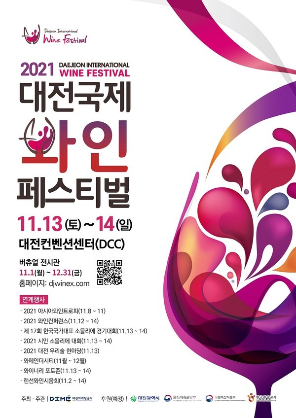 【대전·충남 =서울뉴스통신】 조윤찬 기자 = 대전시는 오는 8일부터 18일까지 11일간 대전 엑스포기념관, 대전컨벤션센터 일원에서 ‘2021 대전국제와인페스티벌’을 개최한다고 5일 밝혔다.