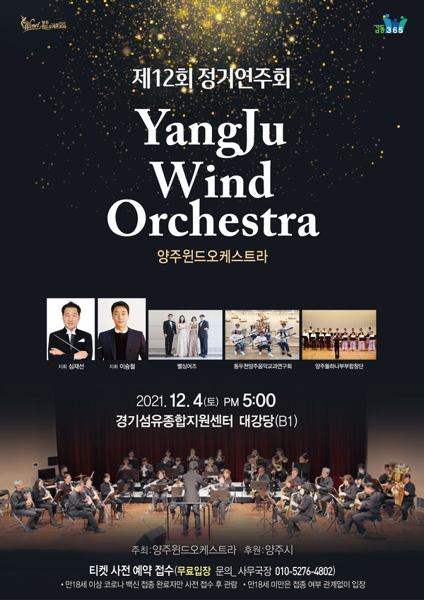 【경기·북부 =서울뉴스통신】 김현채 기자 = 양주시(시장 이성호)는 오는 12월 4일(토) 오후 5시 경기섬유종합지원센터 지하 1층 대강당에서 제12회 양주 윈드 오케스트라 정기연주회를 개최한다고 밝혔다.