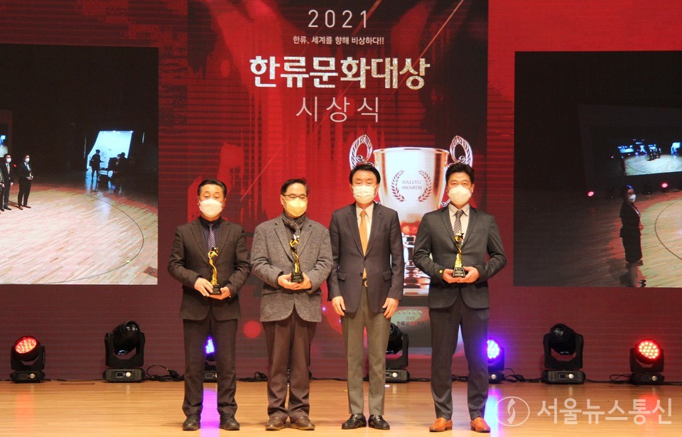【서울 = 서울뉴스통신】 이민희 기자 =㈔마이스융합리더스포럼 진홍석 회장이 20일 오후 대한민국예술인센터 2층 로운아트홀에서 열린 한류닷컴이 주관한 '2021 한류문화대상 시상식'에 참여해 수상하고 있다. 진 회장은 수상소감에 "'2021 한류문화대상 미디어부문'에서 수상했는데, 그동안 몸 담아왔던 아리랑TV에서 나름 한류를 세계에 전파하기 위해 노력했던 시절이 주마등처럼 지나간다"고 밝혔다. 그러면서 "처음 아리랑TV에 합류했을때 첫 행사에 신인그룹이었던 소녀시대를 초청해 공연했었는데, 그 시절이 아련하다"고 전했다. 한편, 진홍석 회장은 ㈔마이스융합리더스포럼을 이끌며, 대한민국 관광 마이스산업에 헌신하고 있다. 2021.12.21/서울뉴스통신