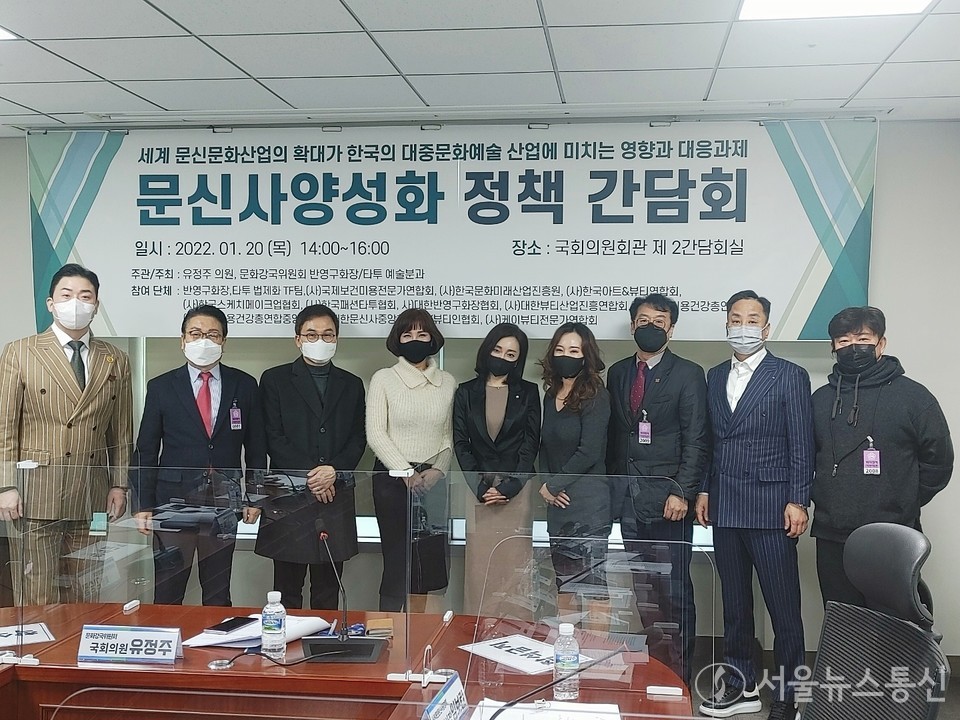 【서울 = 서울뉴스통신】 이민희 기자 =국내 문신사, 타투이시트 등을 위한 법제화 움직임에 국회 더불어민주당 문화강국위원회 유정주 국회의원이 업계와 간담회를 가지며 소통강화에 나선다.