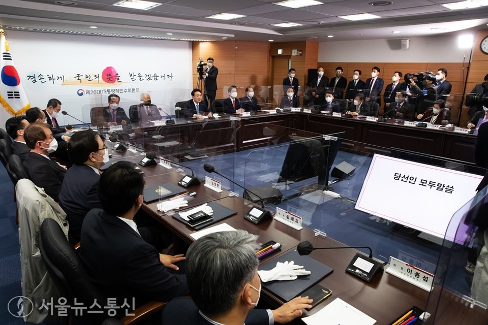 윤석열 대통령 당선인은 18일 오전 통의동 금감원 연수원 내부 대회의실에서 가진 인수위원들과 첫 전체회의에서 “영세 자영업자, 소상공인분들에 대한 신속한 손실보상과 더불어 방역, 의료 문제 등을 중점적으로 다뤄주시기를 당부드린다”고 우선 밝혔다.