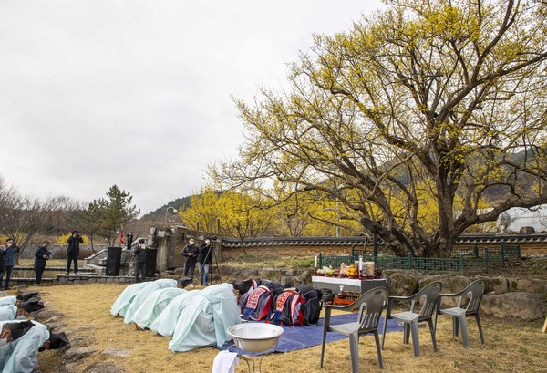 【광주·전남 = 서울뉴스통신】 이철수 기자 =전남 구례군은 산동면 계척마을에 소재한 산수유나무 시목지에서 풍년을 기원하는 제례를 20일 봉행했다.