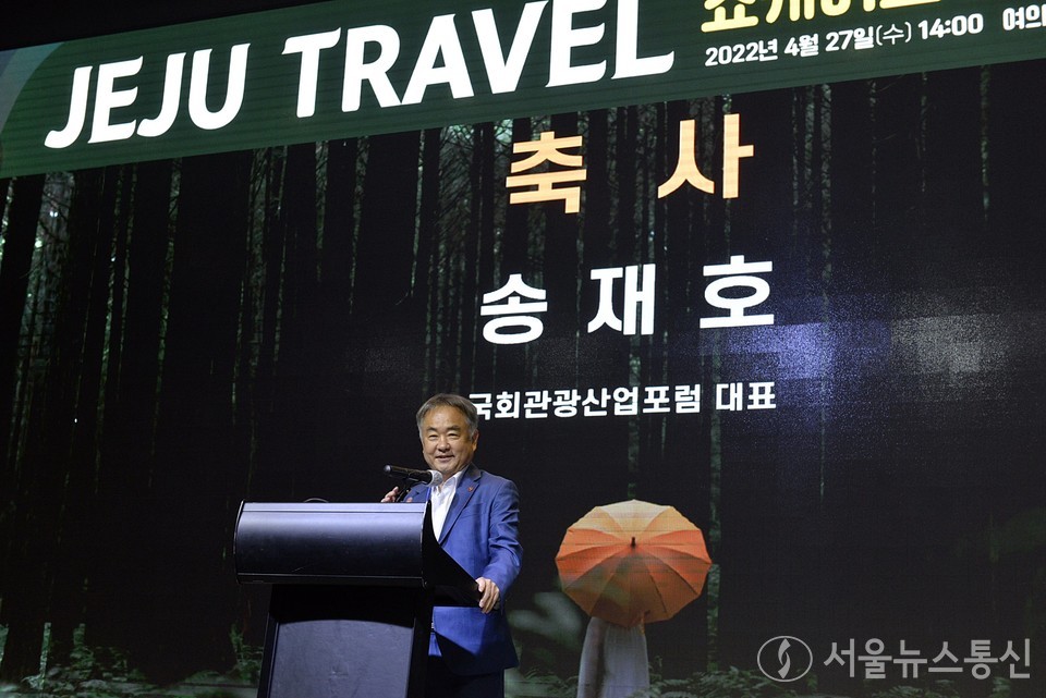 더불어민주당 제주 제주시갑 송재호 국회의원은 축사를 통해, “관광의 산업적 측면을 국회의원들이 주축이 된 관광산업포럼으로 향후 다가서려 한다”며 “제주관광이 한층 더 발전 되길 원하고, 한국 관광의 훌륭한 모범이 되길 바란다”고 했다.
