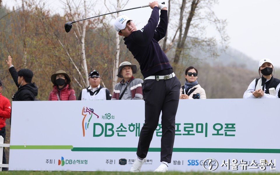 【춘천(강원) = 서울뉴스통신】 이민희 기자 = 전성현(웹케시그룹,30)이 16일 강원도 춘천 라비에벨 컨트리클럽 올드코스(파72, 7148야드)에서 열리고 있는 KPGA 코리안투어 개막전 DB손해보험 프로미 오픈(총상금 7억 원,우승 1억 4천만원) 4라운드 첫 번째 홀에서 드라이버로 티샷을 하고 있다. 2023.4.16./서울뉴스통신 (사진 이민희 기자)