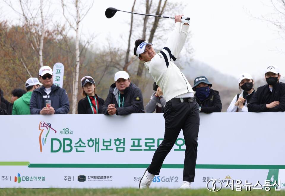 【춘천(강원) = 서울뉴스통신】 이민희 기자 = 박상현(동아제약,40)이 16일 강원도 춘천 라비에벨 컨트리클럽 올드코스(파72, 7148야드)에서 열리고 있는 KPGA 코리안투어 개막전 DB손해보험 프로미 오픈(총상금 7억 원,우승 1억 4천만원) 4라운드 첫 번째 홀에서 드라이버로 티샷을 하고 있다. 2023.4.16./서울뉴스통신 (사진 이민희 기자)
