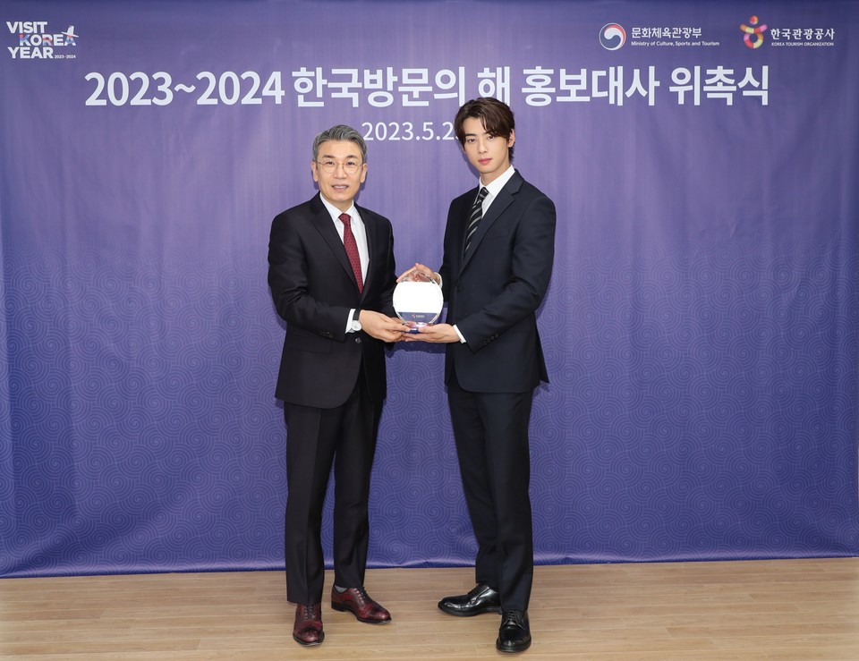 한국관광공사는 23일 공사 하이커 그라운드(HiKR Ground)에서 ‘2023~2024 한국방문의 해 홍보대사’ 위촉식을 열고 차은우를 홍보대사로 임명했다고 밝혔다.