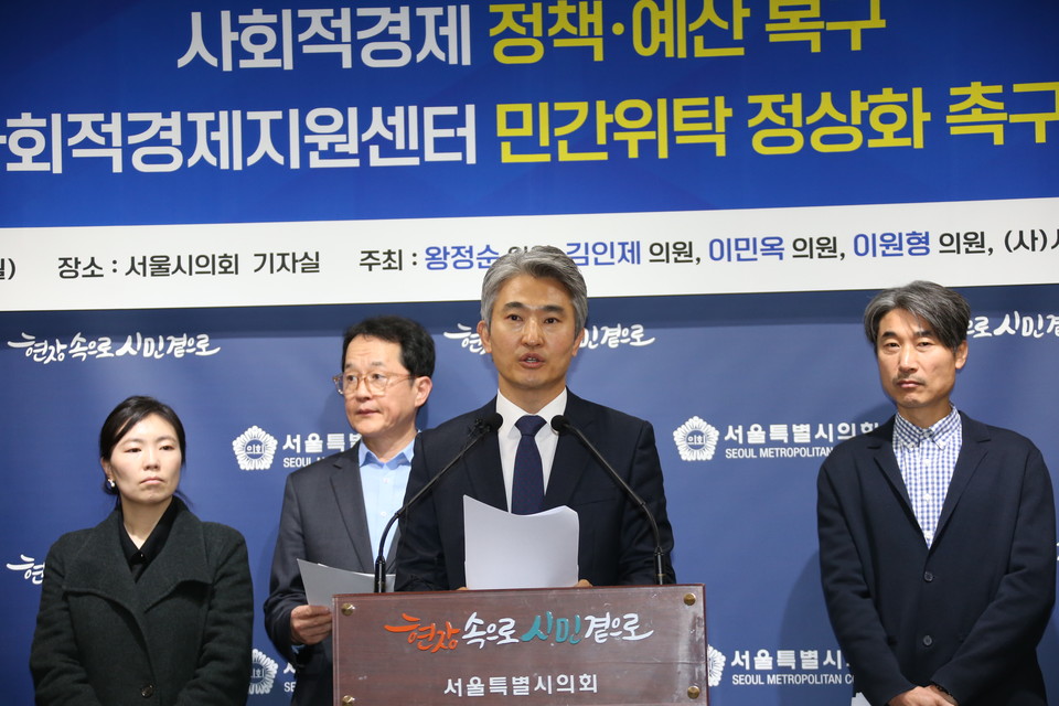 이 날 기자회견은 서울시의회 왕정순, 김인제, 이민옥, 이원형 의원과 사단법인 서울사회적경제네트워크가 주최한 것으로, 사회적경제지원센터의 소관 상임위인 시의회 기획경제위원회 의원들이 주최하고, 김인제 의원이 연대발언을 해 눈길을 끌었다.
