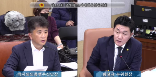 【서울 = 서울뉴스통신】 이민희 기자 = 서울시의회 도시계획균형위원회 황철규 의원(국민의힘, 성동4)은 23일 열린 제321회 정례회 도시계획균형위원회 소관 약자와의동행 추진단 예산안 심사에서, ‘약자와의 동행 정책 온라인 서포터즈’사업의 부실한 운영현황을 지적하고, 적은 예산의 사업이라도 예산낭비가 발생하지 않도록 사업 운영방식을 재점검 해 줄 것을 당부했다.