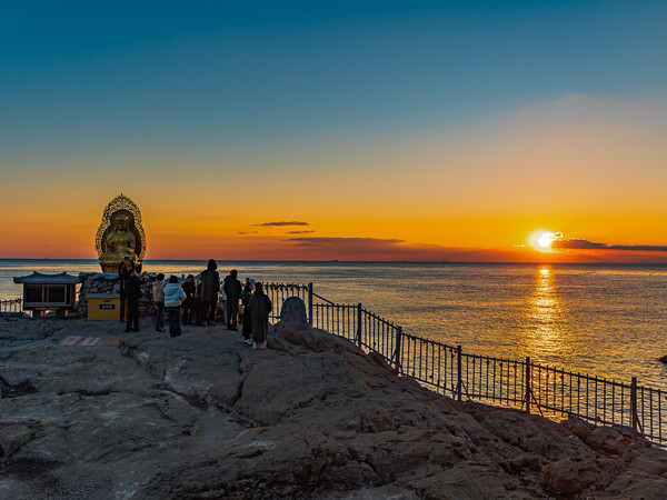 바다와 맞닿은 해동용궁사는 풍경이 아름다운 사찰이다. 관세음보살을 주불로 모시는 관음 성지로, 이곳에서 정성을 다해 빌면 한 가지 소원은 꼭 이뤄진다고 한다. 새해 첫날은 물론 사시사철 일출을 보려는 발길이 끊이지 않으며, 지장보살이 자리한 제룡단 방생 터가 해돋이 명소다. 용의 머리 형상을 한 용두암을 시작점으로 사찰 곳곳에 있는 전각과 조각상 등을 이으면 꿈틀거리는 용의 전체 모습이 그려져 더욱 영험한 기운이 흐르는 듯하다. 바다를 내려다보며 자애로운 미소를 짓는 해수관음대불이 사찰의 백미다. 해동용궁사 옆 국립수산과학원 수산과학관 쪽으로 향하면 사람들이 소원을 빌며 쌓은 돌탑이 옹기종기 모인 파식대지가 있는데, 사찰 전경이 한눈에 담기는 포토 스폿이다. 해동용궁사는 오전 4시 30분부터 입장가능하며, 오후 7시에는 관람객 전원이 외부로 나와야 한다. 입장료는 없다.