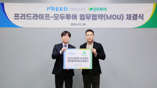 서울 중구 프리드라이프 본사에서 진행된 이번 협약식에는 모두투어 우준열 부사장, 프리드라이프 김재준 부사장 등이 참석했다.