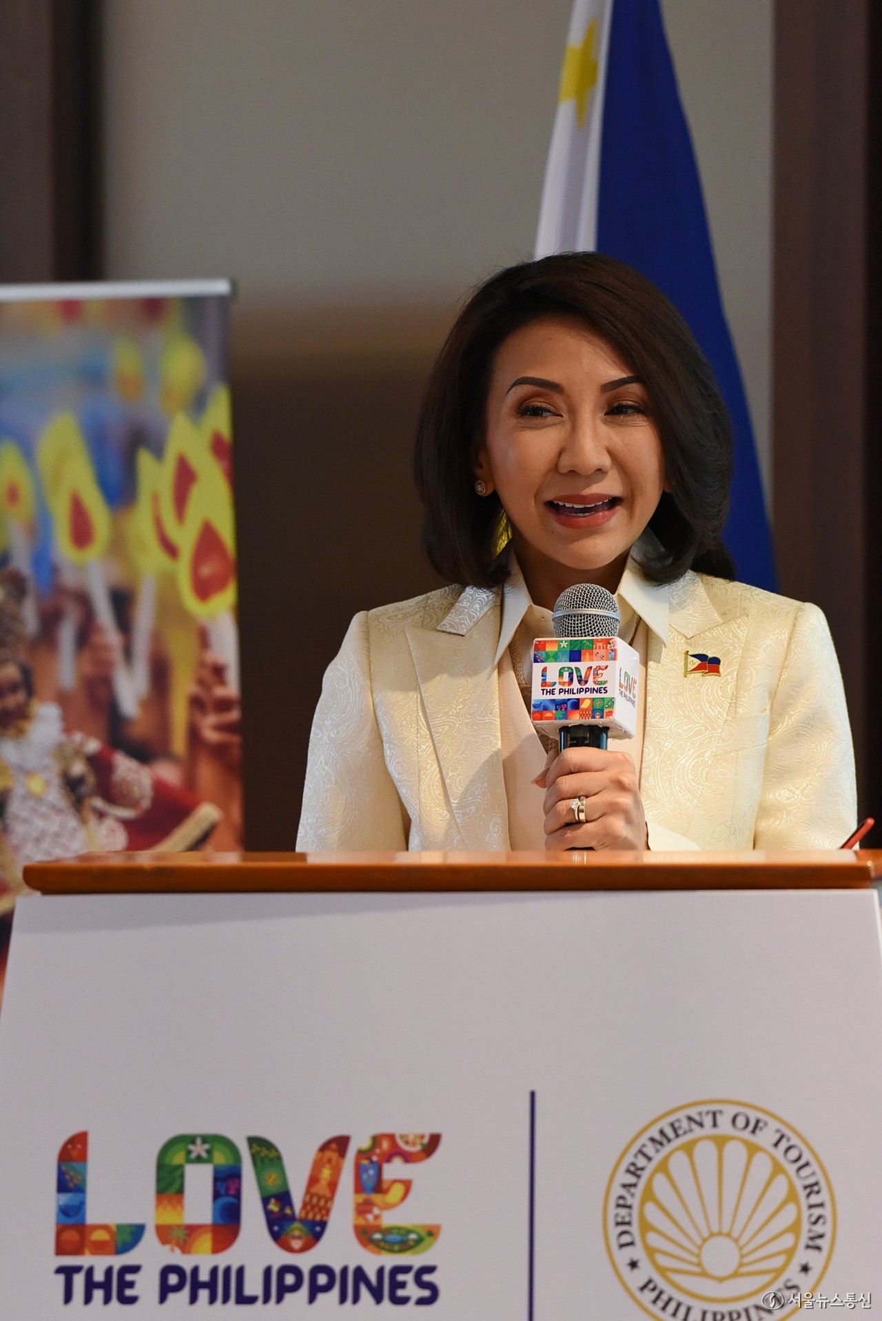 【서울 = 서울뉴스통신】 이민희 기자 = 필리핀 정부의 관광을 이끄는 크리스티나 가르시아 프라스코 장관이 8일 서울 롯데호텔에서 기자회견을 갖고 “필리핀 해외 방문객이 상반기에만 200만 명을 넘었다”고 우선 밝히며, “한국인 방문객은 약 57만 명을 기록, 필리핀 인바운드 시장 1위를 차지했다”고 말했다. 크리스티나 가르시아 프라스코 필리핀 관광 장관은 “마르코스 행정부의 비전과 ‘2023-2028 국가관광개발계획(NTDP)승인’을 통해 관광산업 목표를 지속적으로 달성할 수 있을것으로 확신한다”고 말했다. 2024.05.08. 사진 이민희 기자 nimini73@daum.net © 서울뉴스통신 무단전재 및 재배포 금지