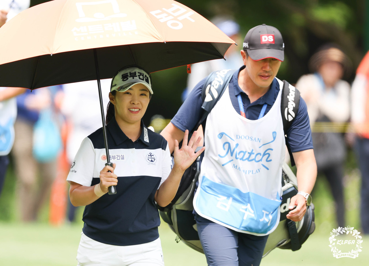 【서울 = 서울뉴스통신】 이민희 기자 = 15일 강원도 춘천시 라데나 골프클럽(파72)에서 펼쳐진 KLPGA 투어 유일의 매치플레이인 두산 매치플레이(총상금 9억원·우승상금 2억2500만원) 조별 예선 1라운드에서 김수지가 2024 두산매치플레이 1R 2번홀 에서 이동하고 있다. 현재 강원도 춘천 라데나GC에는 비가 내리고 있다. 2024.05.15. (사진제공 KLPGT) © 서울뉴스통신 무단전재 및 재배포 금지