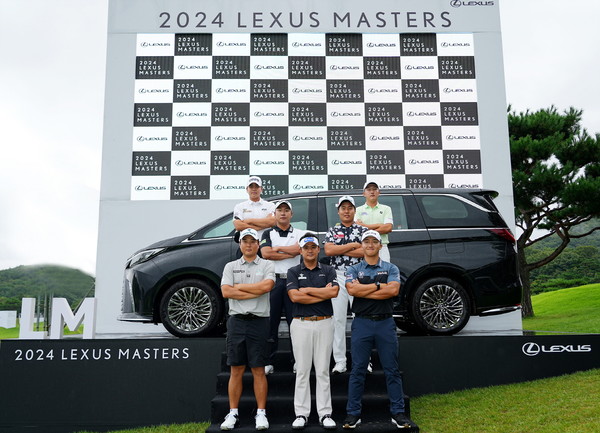 【서울 = 서울뉴스통신】 이민희 기자 = 28일 KPGA투어 신설 대회 ‘2024 렉서스 마스터즈’ 개막을 하루 앞두고 18번홀에 전시된 렉서스 차량과 함께 포토콜 행사를 진행했다. (맨아래 줄 왼쪽부터) 함정우, 박상현, 김홍택 (가운데 줄 왼쪽부터) 전가람, 이승민 (맨윗줄 왼쪽부터) 장유빈, 김백준 (사진제공) 렉서스 마스터즈 대회 운영 본부