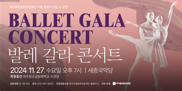 【경기·동부 = 서울뉴스통신】 김인종 기자 = 여주세종문화관광재단은 오는 11월 27일, 여주 세종국악당에서 발레의 아름다움을 만끽할 수 있는 특별한 공연 ‘여주 발레 꿈나무와 함께하는 발레 갈라 콘서트’를 개최한다.