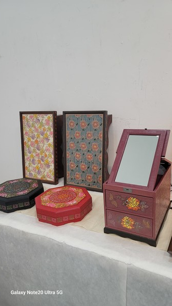 -. 사실 한지를 통해 제작된 것은 서민들의 생활용품이었습니다. 집안에서 사용하는 경대나 장식장, 혼수함, 서랍장, 12각 대상, 소반 등등 일상적으로 가정에서 사용하는 필수 생활 용품이었습니다.