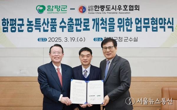 【신화/서울뉴스통신】 권나영 기자 = 한중도시우호협회가 19일 전라남도 함평군과 한·중 교류 증진 및 함평군 농특산품 수출판로 개척을 위한 업무협약을 체결했다.