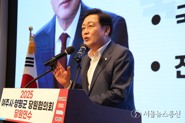 【서울 = 서울뉴스통신】 이민희 기자 =  ‘2025 여주시·양평군 당원협의회 당원연수’가 25일 오후 2시 경기 여주시 남한강썬밸리호텔 2층에서 개최됐다. 여주시·양평군 당협위원장인 김선교 의원(21·22대 의원)이 먼저 축사를 했고, 이어 윤상현 의원이 ‘이번 사태의 본질은 체제수호 전쟁이다’주제 강의를 열띤 박수와 함께 이어갔다. 윤희숙 여의도 연구원장의 ‘대한민국 새판짜기’ 강의도 이어졌다. 500여명이 넘는 양평·여주 국민의힘 당원이 모여 “윤 대통령 탄핵을 기각하라, 각하하라” “지켜내자 윤석열” “지켜내자 김선교” 등을 외쳤다. 2025.03.25. snakorea.rc@gmail.com 사진 신현성 기자