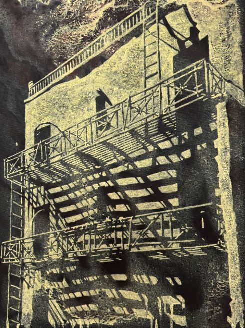 전상원 작가는 이번 페어에서 도시 풍경을 소재로 한 유화와 송화가루를 활용한 실험적 회화, 그리고 초상화 한 점을 공개한다.