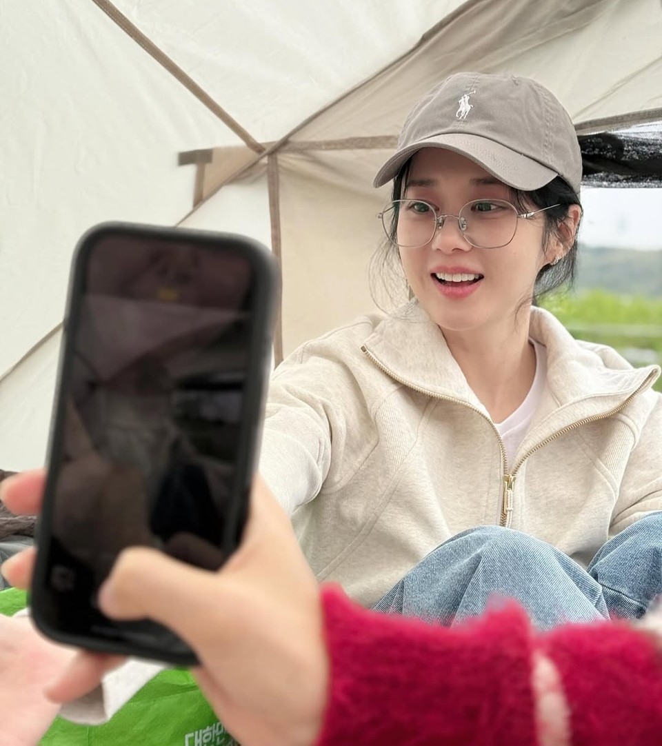 장나라는 반려견들과 함께 텐트 안에서 여유로운 시간을 보냈다.