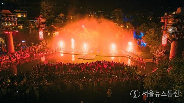 다채로운 야간 체험 활동과 공연은 거셴산을 찾는 관광객들에게 인기 있는 일정 중 하나다. 해 질 무렵 중앙 수계 관광지에 들어서면 조명 쇼, 워터스크린 영화, 무형문화유산 공연 등 풍성한 프로그램이 끊임없이 이어진다. 꽃밭에 둘러싸인 이곳에서 관광객은 시원한 계곡에 온 듯한 느낌과 북적이는 시장 거리의 활기찬 분위기를 동시에 느낄 수 있다.