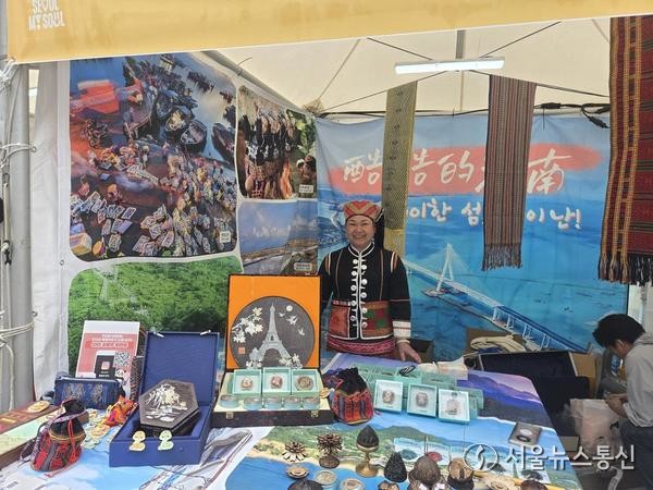 【신화/서울뉴스통신】 권나영 기자 = 각국의 문화를 즐길 수 있는 '2025 서울 세계도시문화축제'가 최근 막을 내렸다. 중국 하이난(海南)성 우즈산(五指山)시에서 온 류샹란(劉香蘭)은 현장에서 직접 베틀을 잡고 실크 사이사이에 정교한 무늬를 넣는 리(黎)족 견직물을 제작해 관람객의 눈길을 사로잡았다.
