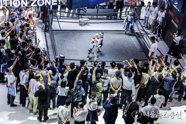 즈청(智澄)AI 전시구역에선 키 1.8m, 체중 75㎏의 TR5 고성능 범용 휴머노이드 로봇이 눈길을 사로잡았다. 전시구역 직원 펑샤오(馮笑)는 "바이오닉 아키텍처를 적용해 주요 관절을 자유롭게 회전할 수 있고, 스마트 중추를 탑재해 밀리초 단위의 반응을 구현해 냈다"고 설명했다. 무거운 물건을 나르는 육체 노동부터 달걀을 잡는 섬세한 작업까지 가능한 이유다.
