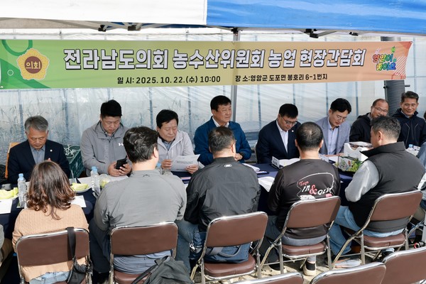 【광주·전남 = 서울뉴스통신】 이철수 기자 =전라남도의회 농수산위원회(위원장 김문수, 신안1)는 지난 10월 22일 영암군 도포면 방울토마토 재배 시설 원예농가와 시종면 농업근로자 기숙사 신축 현장을 방문하여 현장의 목소리를 청취하고, 농업인들과의 소통간담회를 통해 실효성 있는 지원 방안 마련에 나섰다.