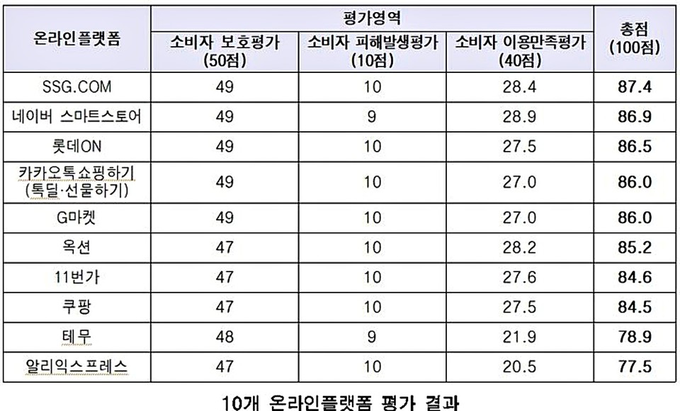 평가 대상은 △SSG.COM △네이버 스마트스토어 △롯데ON △카카오톡 쇼핑하기 △G마켓 △옥션 △11번가 △쿠팡 △테무 △알리익스프레스 등이다.