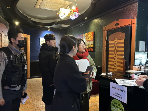 ‘성매매방지 및 피해자보호 등에 관한 법률’에 따라 유흥주점업소는 성매매 방지 안내물을 이용자가 보기 쉬운 장소에 게시해야 한다. 합동 점검반은 ▲성매매 알선 등 성매매 행위 여부 ▲안내물 규정 준수 여부(게시물 크기·게시 위치·문구 내용) ▲성매매피해상담소 연락처 표기 여부 등을 중점적으로 살폈다.