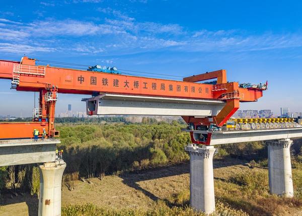 (사진=신화통신 제공) 【서울 = 신화/서울뉴스통신】 권나영 기자 = 20일 중국철건(鐵建) 대교국 시공 장비가 후위룽(滬渝蓉·상하이~충칭~청두)고속철도 장두(江都) 구간에서 마지막 박스빔을 조립하고 있는 현장을 드론으로 담았다. 이날 후위룽고속철도 장두 구간의 박스빔 설치가 모두 완성됐다.