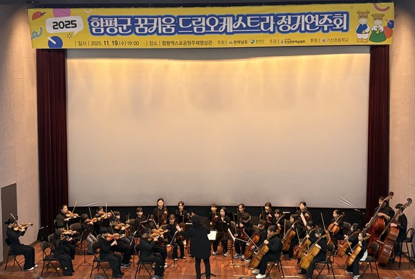 함평군은 21일 “꿈키움 드림오케스트라의 정기연주회가 지난 19일 함평엑스포공원 주제영상관에서 100여 명이 관객이 참석한 가운데 성황리에 마무리됐다”고 밝혔다.